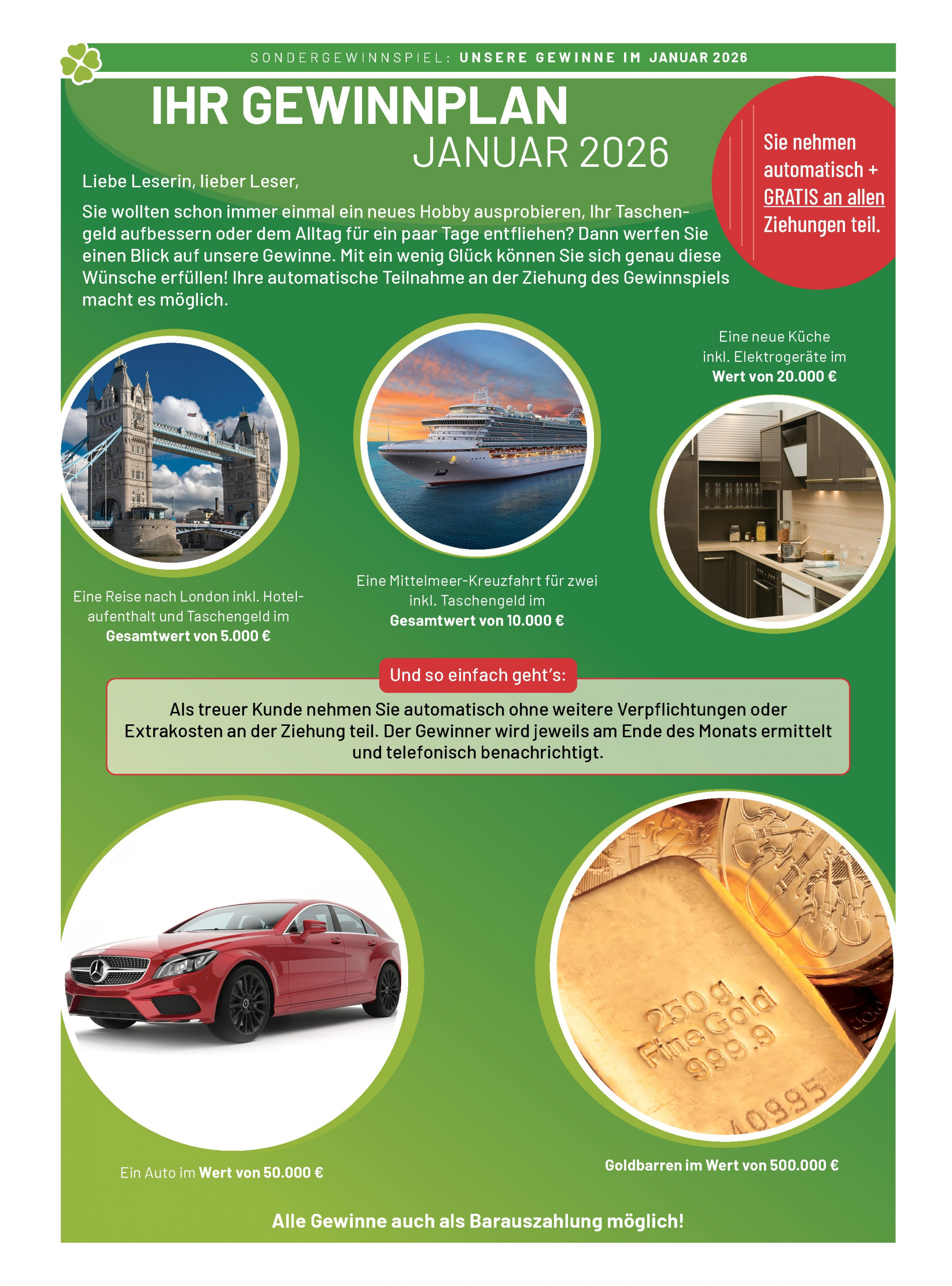 Jeden Monat tausende Gewinnchancen